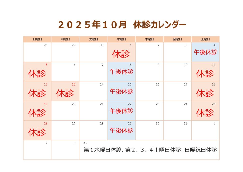 10月の休診についてはこちらのカレンダーをご確認ください。