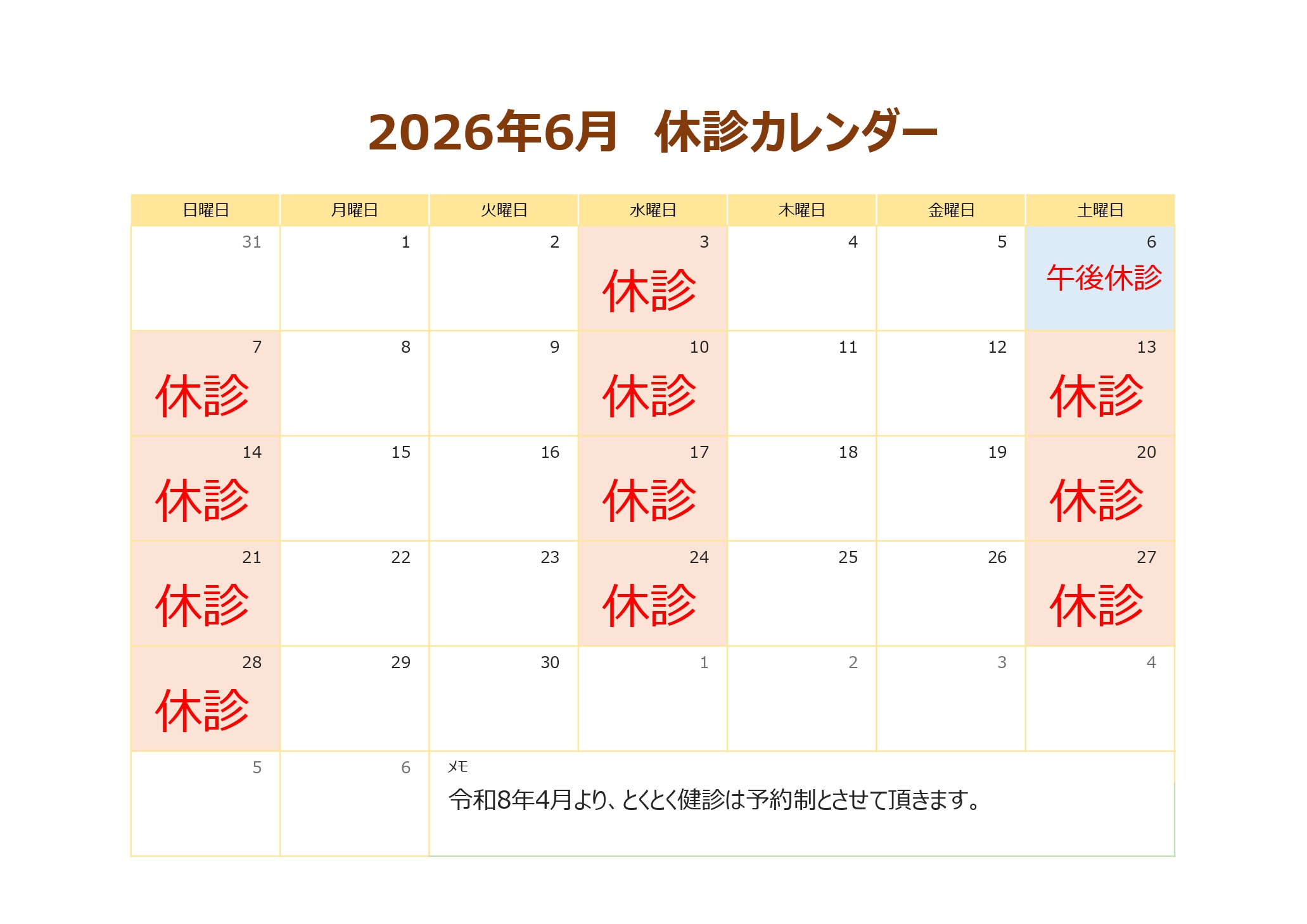 6月の休診についてはこちらのカレンダーをご確認ください。