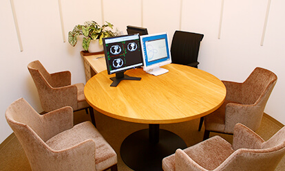 がん治療相談・指導室に関してはプライバシーに配慮した個室を完備。患者さんとご家族の方には静かな、ゆったりとした環境のなかでがん治療に関して納得のいくまでご相談いただき、治療方針を決定させていただきます。