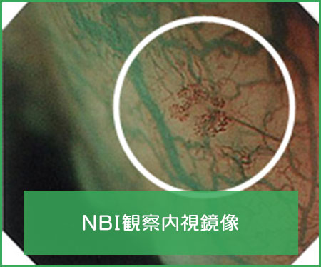 がんは早期のうちから腫瘍血管を持っていますが、この腫瘍血管は正常組織の微細血管にくらべて径が大小不同になったり、途中で途絶したりします。こういった早期がんの特徴をNBIでとらえることができるわけです。